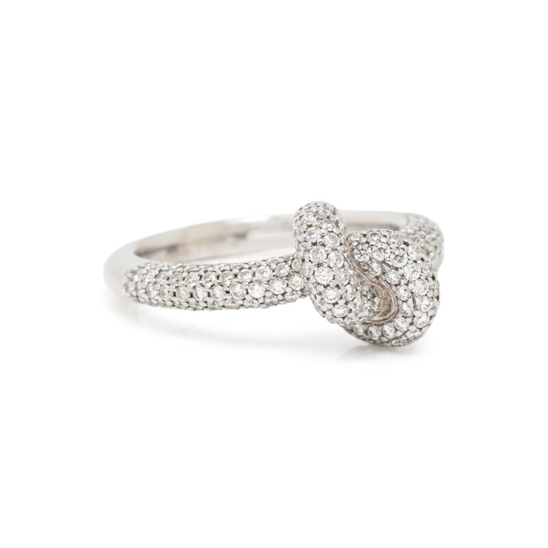 ENGLEBERT, WHITE GOLD AND DIAMOND KNOT RING