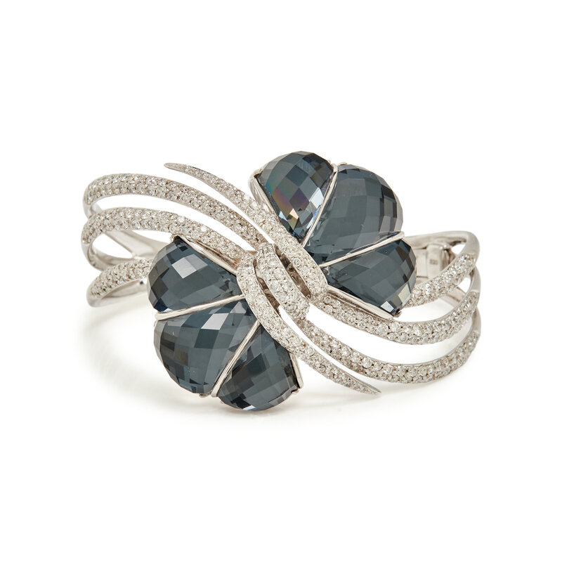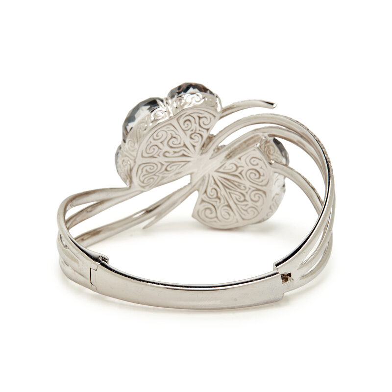 STEPHEN WEBSTER, WHITE GOLD, DIAMOND, HEMATITE, AND QUARTZ 'FORGET ME KNOT' BANGLE BRACELET
