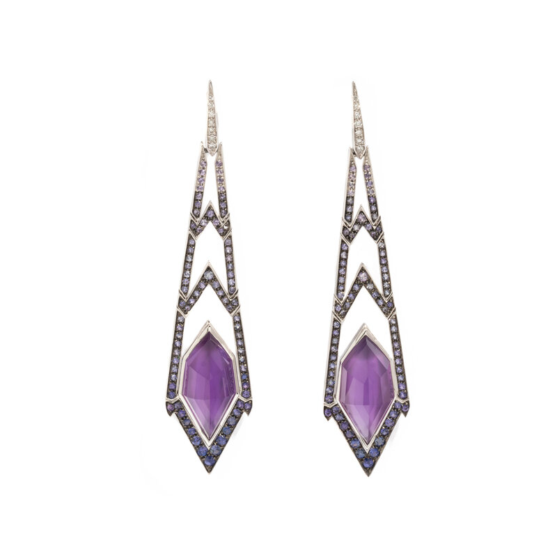 STEPHEN WEBSTER, WHITE GOLD, AMETHYST, AND DIAMOND ‘LADY STARDUST’ EARRINGS