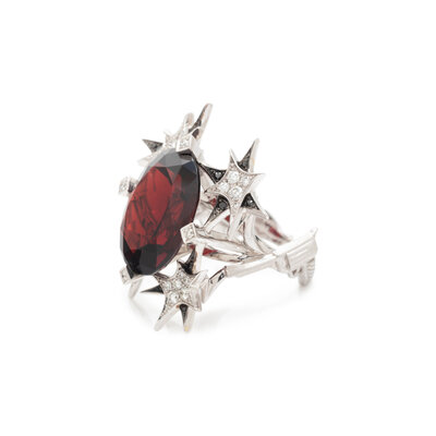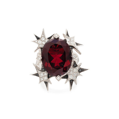 STEPHEN WEBSTER, GARNET, DIAMOND, AND BLACK DIAMOND 'PISTOL' RING