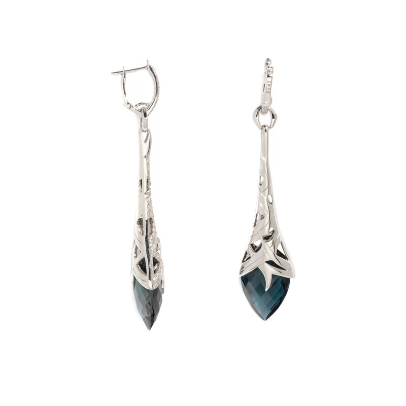 STEPHEN WEBSTER, WHITE GOLD, BLUE TOPAZ, AND DIAMOND 'THORN' EARRINGS