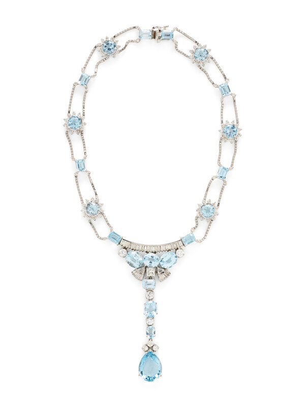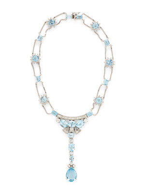 WHITE GOLD, BLUE TOPAZ, AND DIAMOND NECKLACE