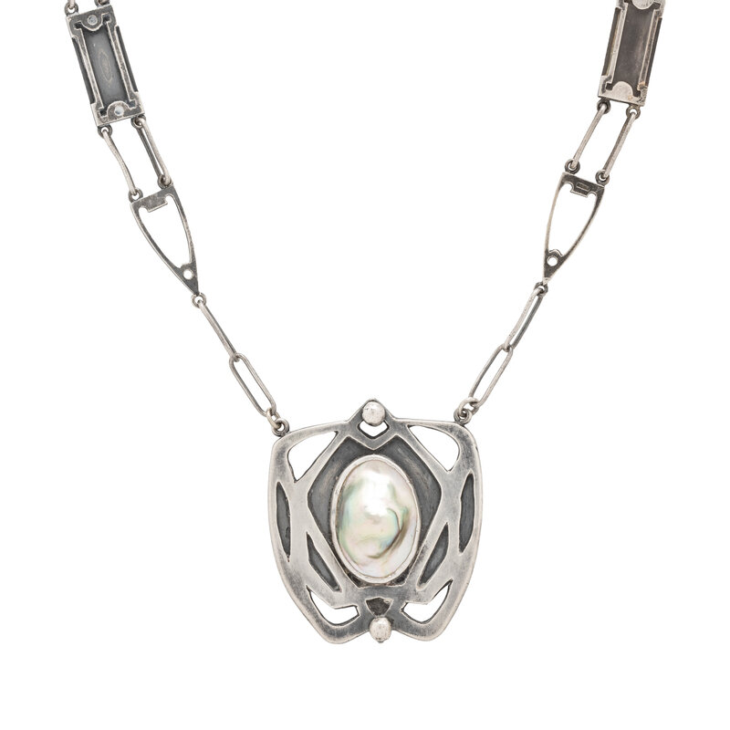 KALO SHOP, ARTS AND CRAFTS, STERLING SILVER AND BLISTER PEARL NECKLACE