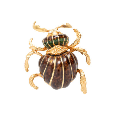 YELLOW GOLD AND ENAMEL BEETLE BROOCH