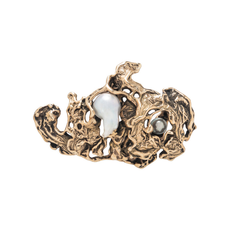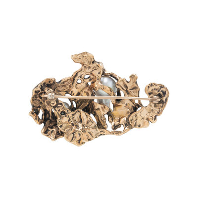 YELLOW GOLD AND CULTURED PEARL BROOCH