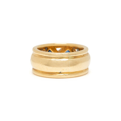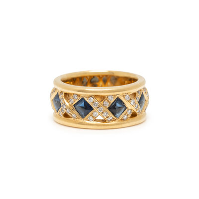 CARELLE, YELLOW GOLD, SAPPHIRE, AND DIAMOND BAND RING
