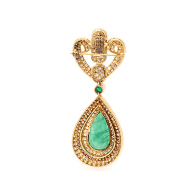 DIAMOND AND SYNTHETIC EMERALD BROOCH