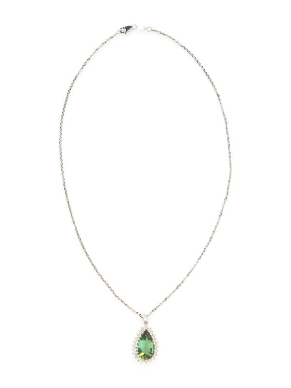 GREEN TOURMALINE AND DIAMOND PENDANT NECKLACE