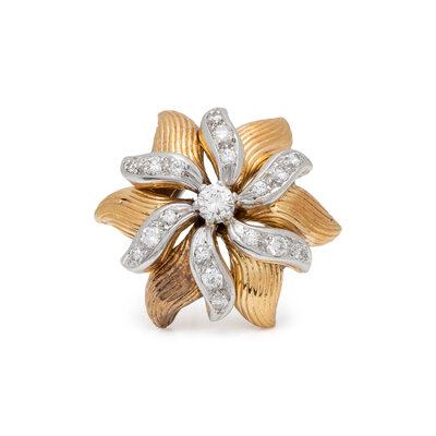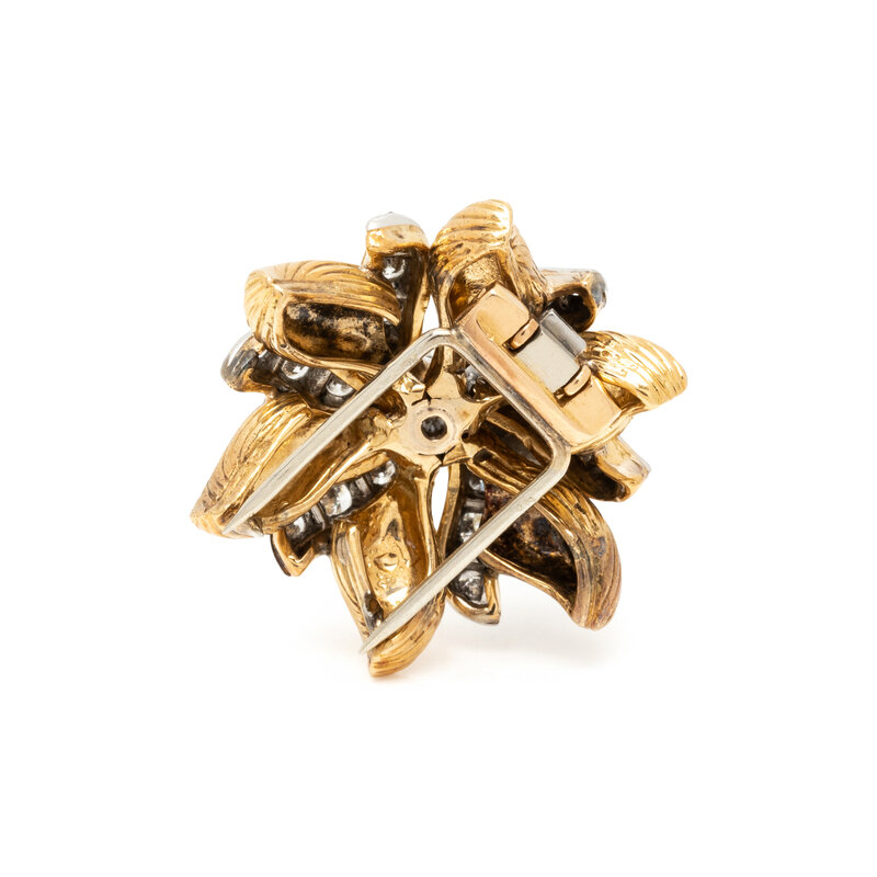 DIAMOND, YELLOW GOLD, AND PLATINUM BROOCH