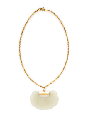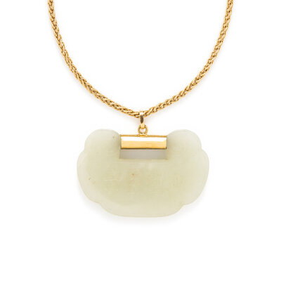 YELLOW GOLD AND CARVED JADE NECKLACE