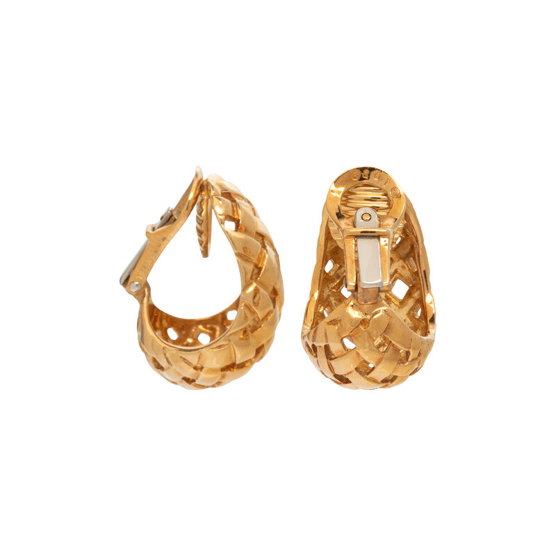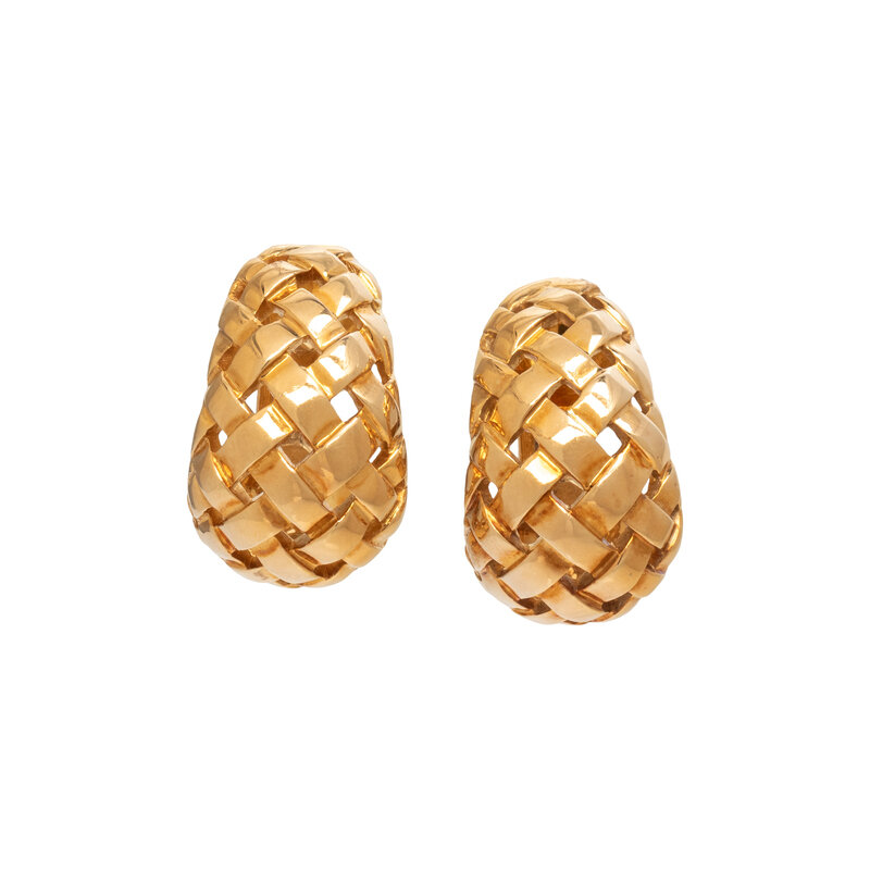 TIFFANY & CO., YELLOW GOLD 'VANNERIE' BASKETWEAVE CLIP EARRINGS