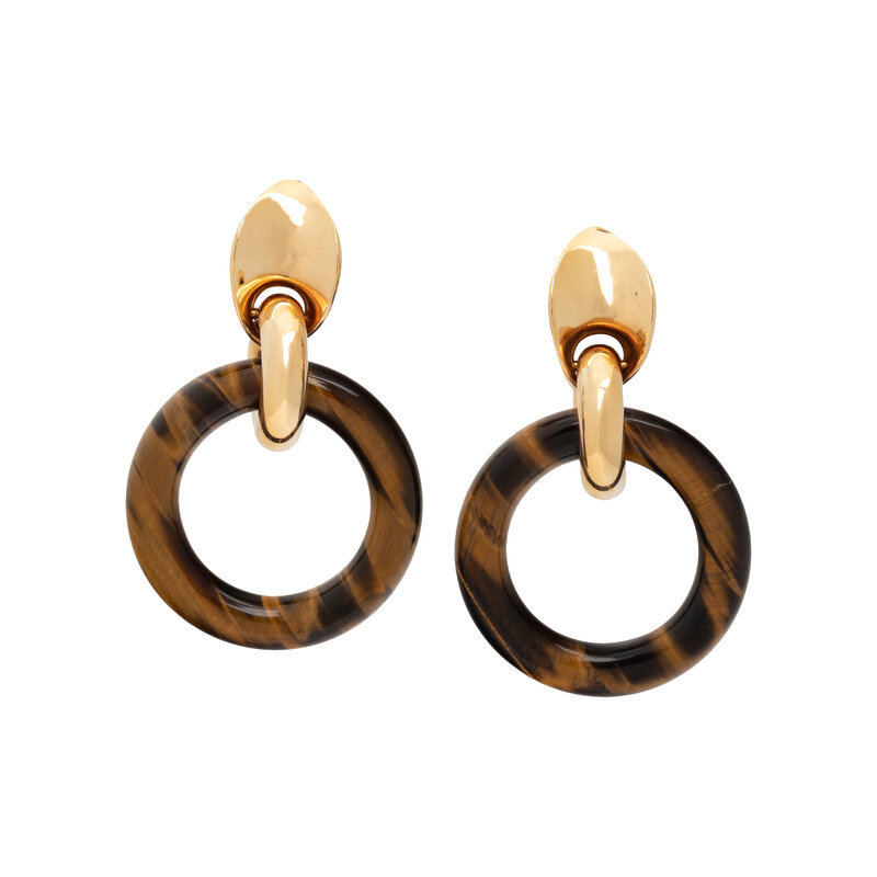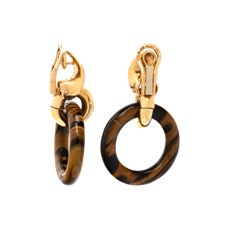 GAY FRÈRES, YELLOW GOLD AND TIGER'S EYE CLIP EARRINGS
