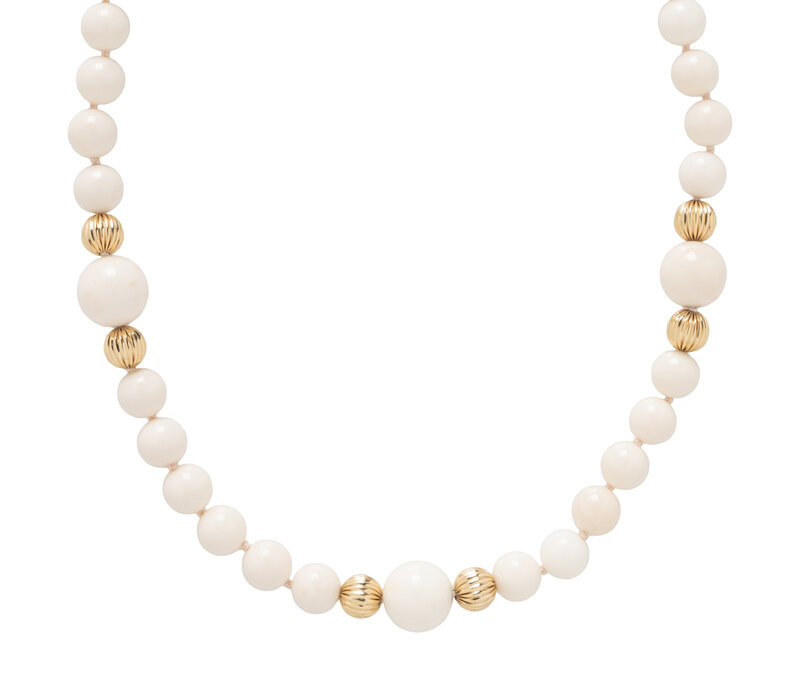 CORAL AND YELLOW GOLD BEAD NECKLACE