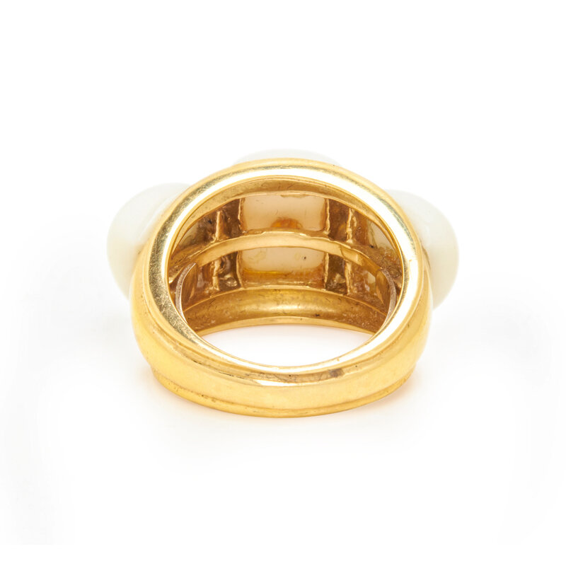 YELLOW GOLD, WHITE CORAL, AND DIAMOND RING