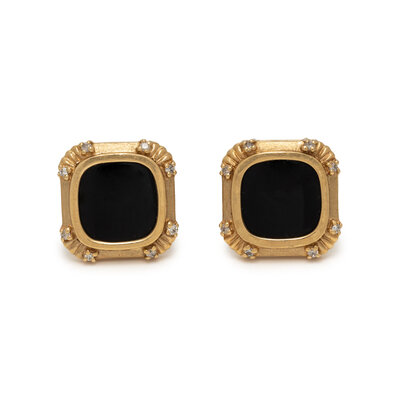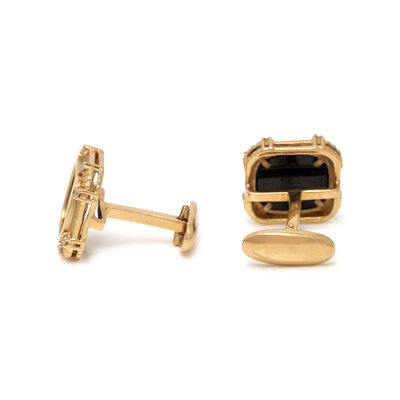 ONYX, DIAMOND AND YELLOW GOLD CUFFLINKS