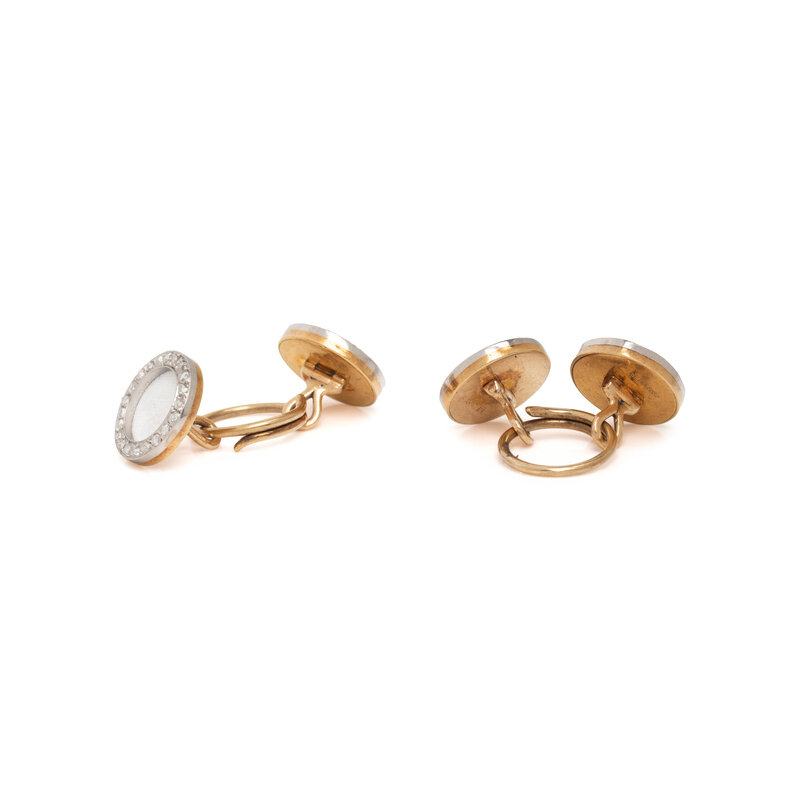 CARTIER, DIAMOND AND LINEN ENAMEL CUFFLINKS