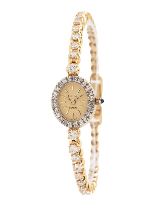 GENEVE, 14K YELLOW GOLD AND DIAMOND WATCH