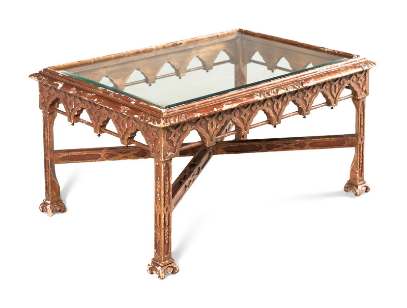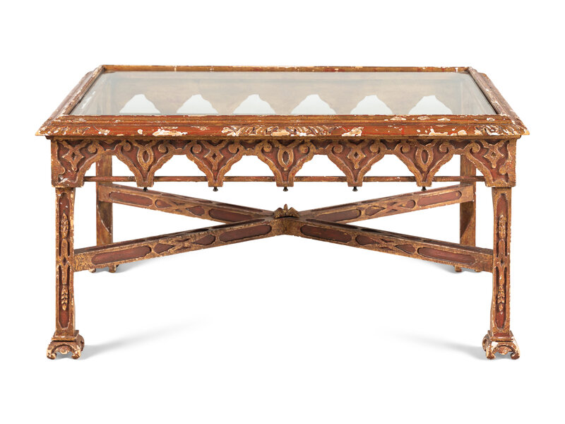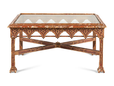 A Venetian Gothic Style Painted and Parcel Gilt Low Table
