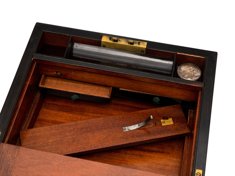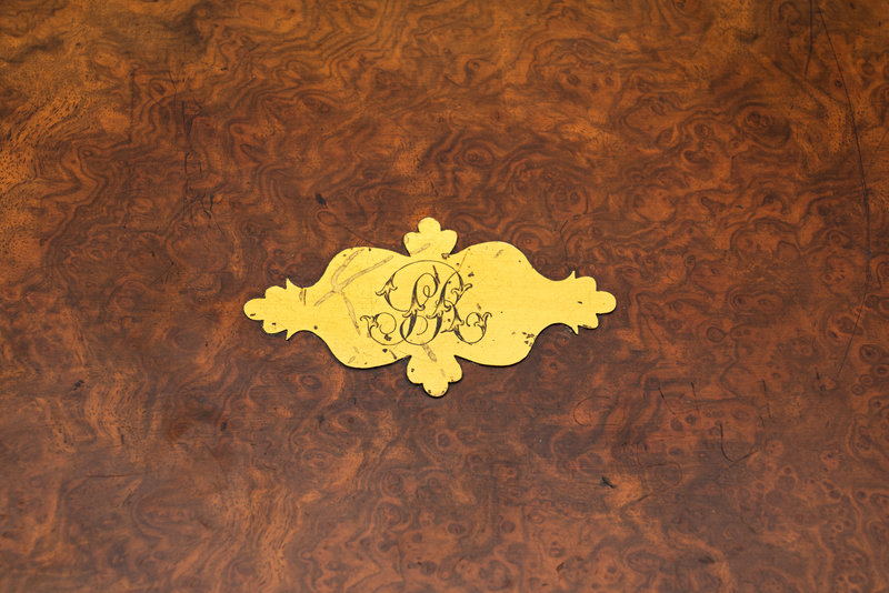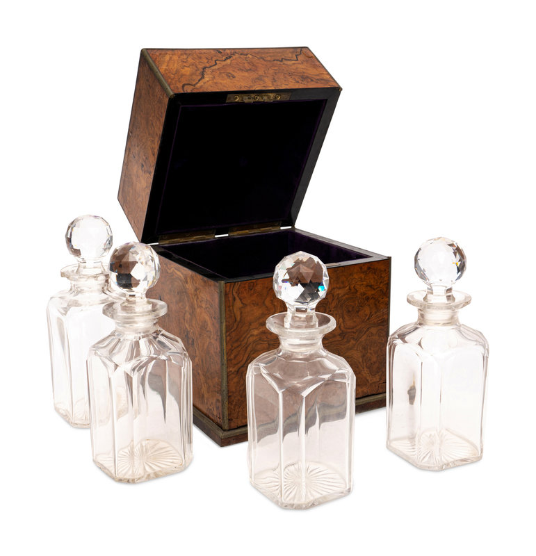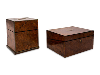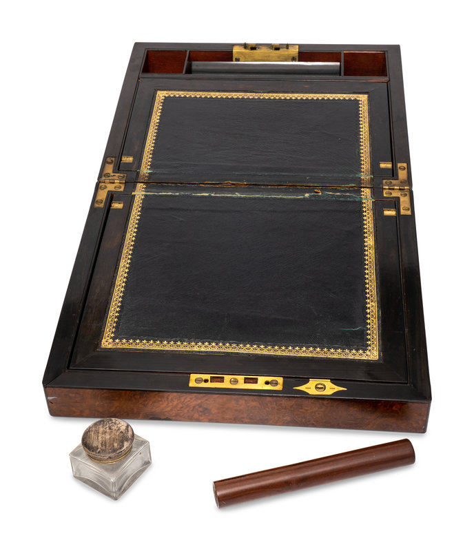 An English Burlwood Writing Slope and an English Burlwood Decanter Caddy