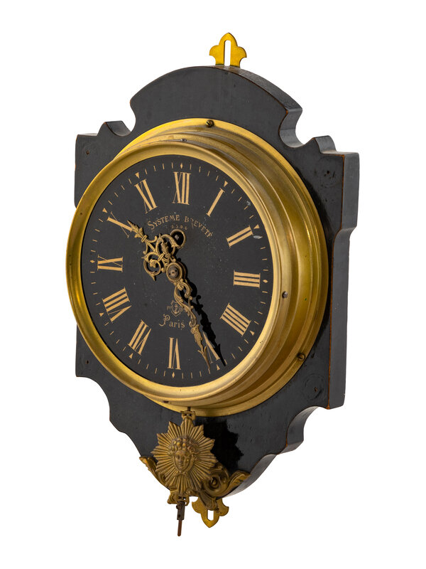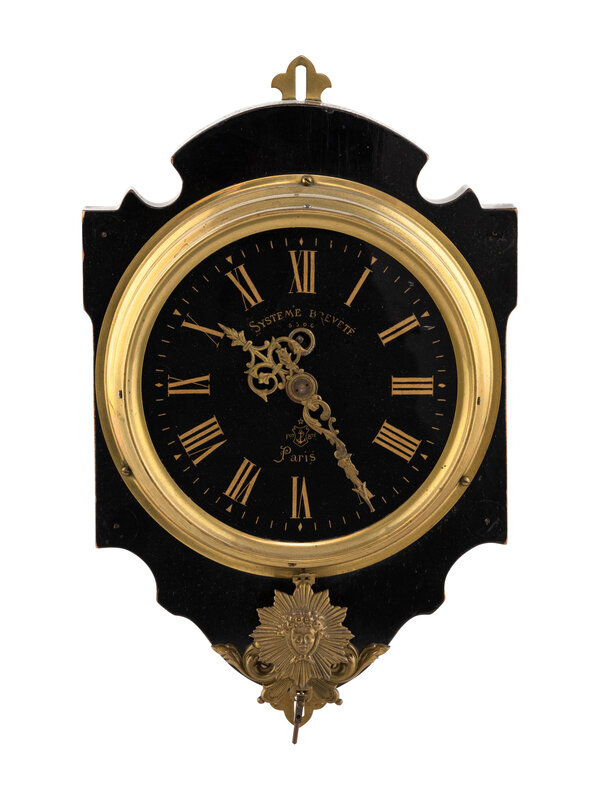 A French Gilt Metal Mounted Ebonized Wall Clock