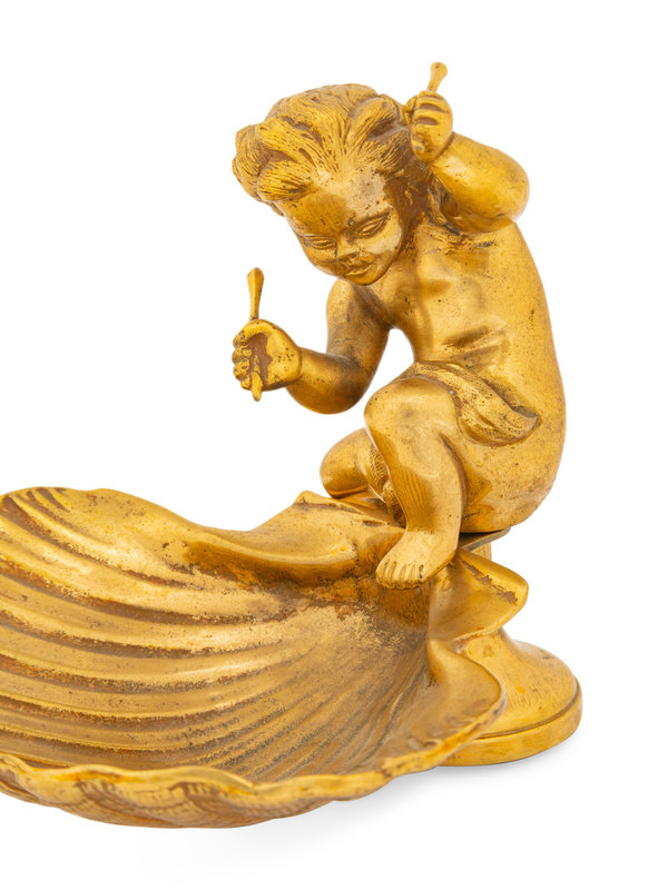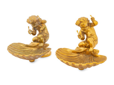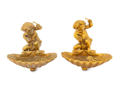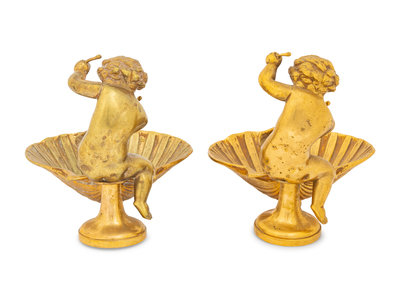 A Pair of Continental Gilt Bronze Putto and Shell Ornaments