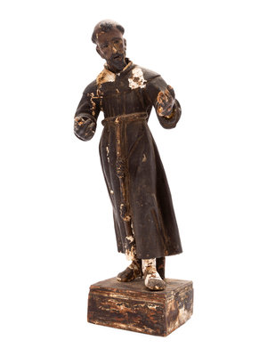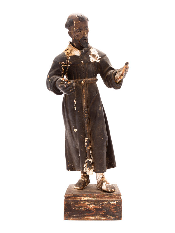 A Spanish Colonial Painted Wood Figure of a Saint