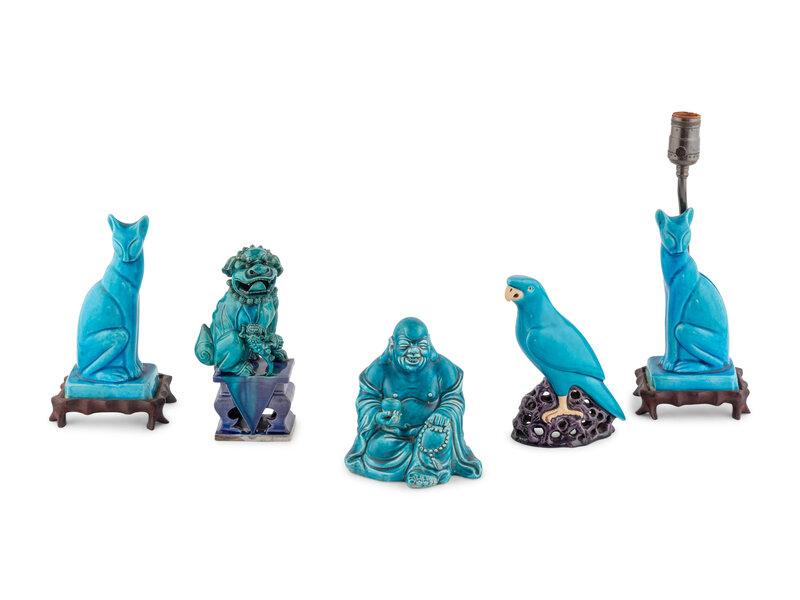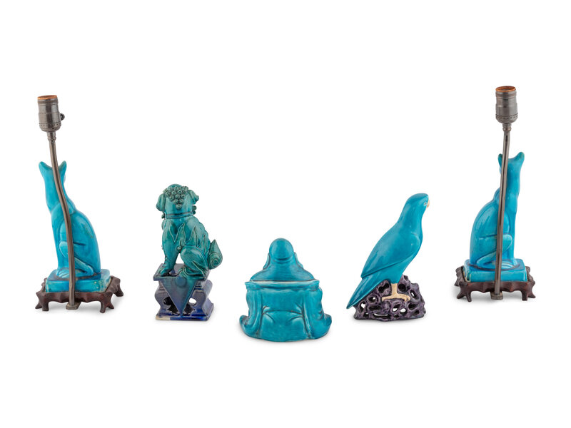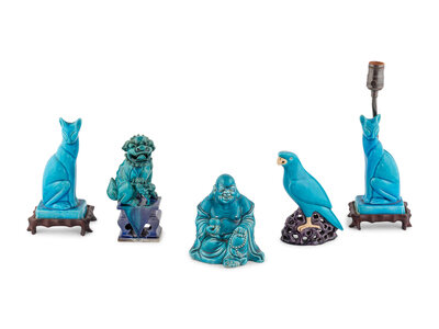 Five Chinese Export Turquoise Glazed Porcelain Figures