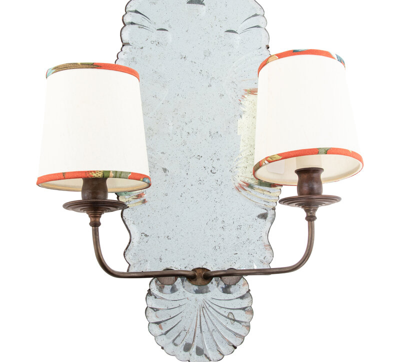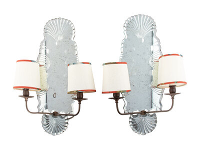 A Pair of Venetian Style Two-Light Mirrored Sconces