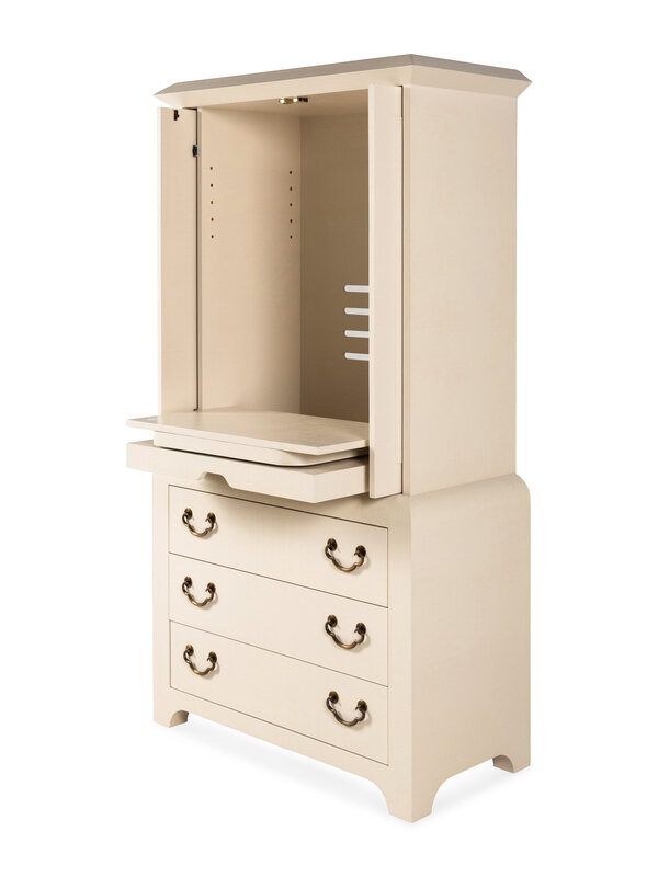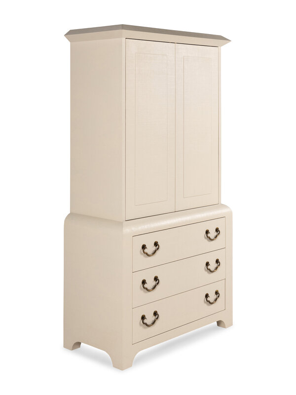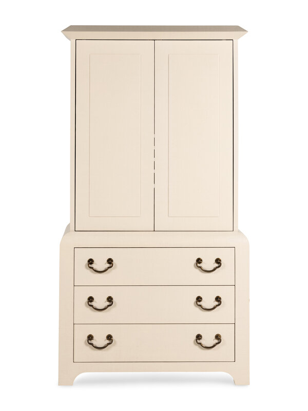 A Harrison-Van Horn Lacquered Raffia Media Cabinet