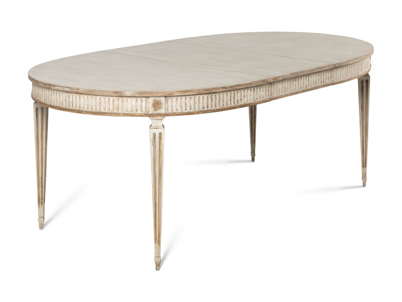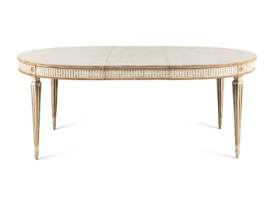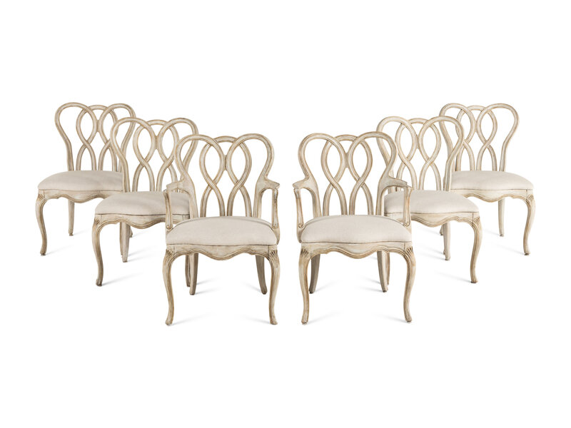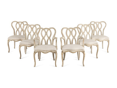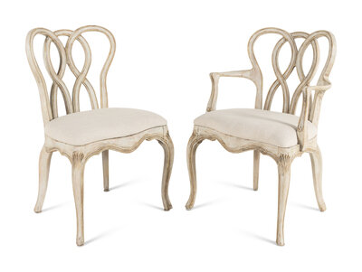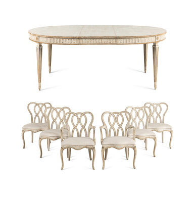 A Dennis and Leen Painted and Parcel-Gilt Dining Suite