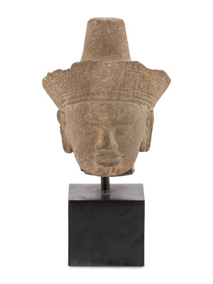 A Khmer Sandstone Head of Bodhisattva