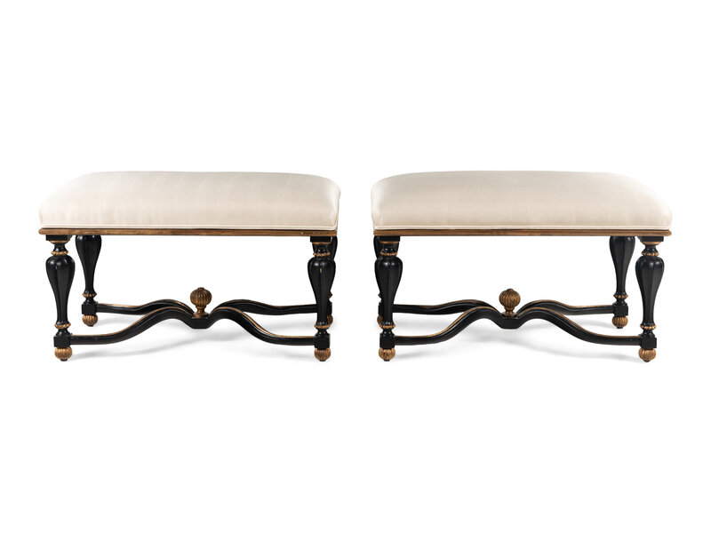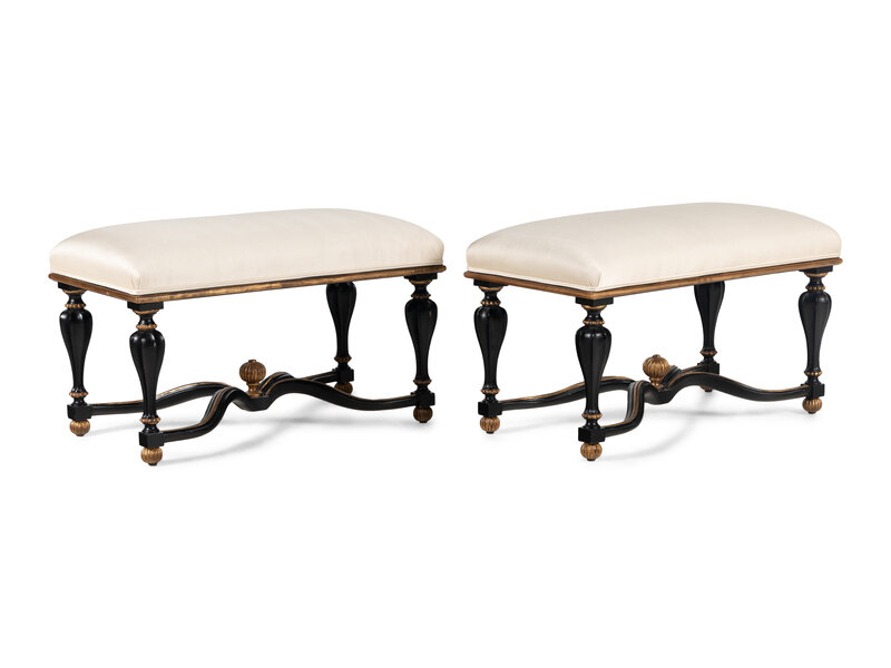 A Pair of Painted and Upholstered Benches