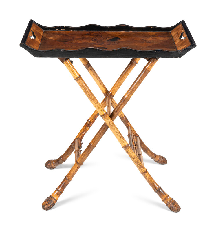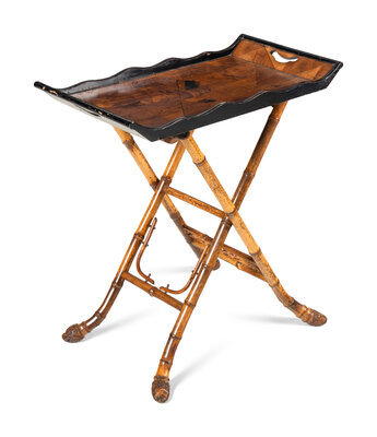A Victorian Part Ebonized Tray Table on a Faux Bamboo Stand