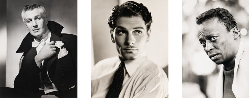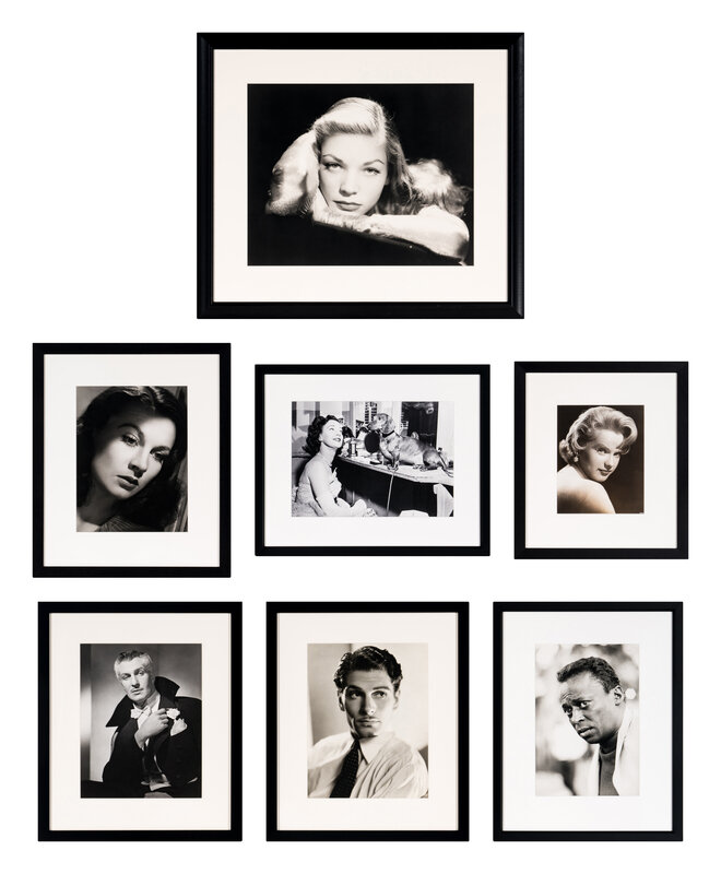 Visible area of each 16 x 20 in. or smaller, all matted and framed. Gelatin silver and inkjet prints of stars Anne Francis, Lauren Bacall, Miles Davis, Jane Froman, Laurence Olivier, Vivien Leigh, Vincent Price, and Ingrid Bergman.