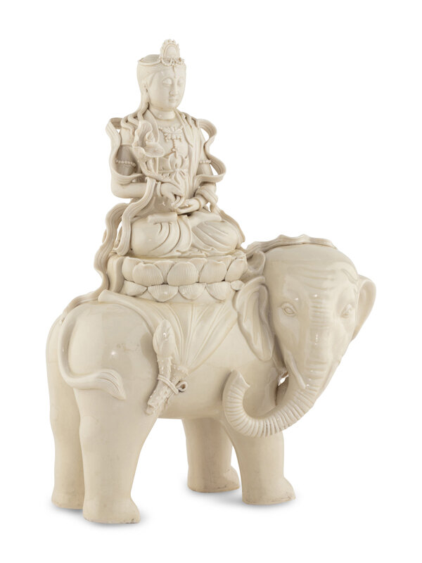 A Blanc-de-Chine Figure of Guanyin Atop an Elephant