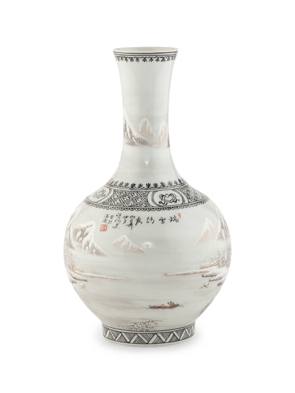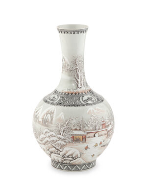 A Chinese Grisaille Decorated Porcelain 'Snow Scene' Vase