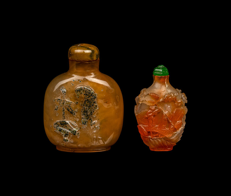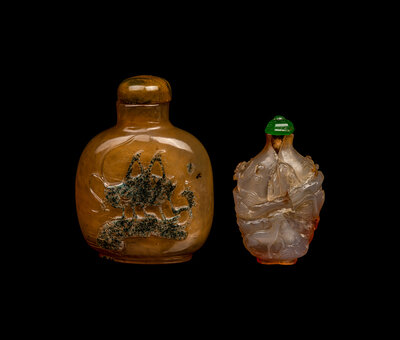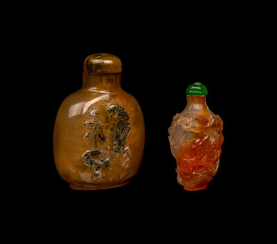 Two Chinese Carved Agate Snuff Bottles