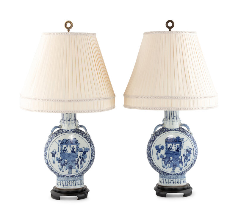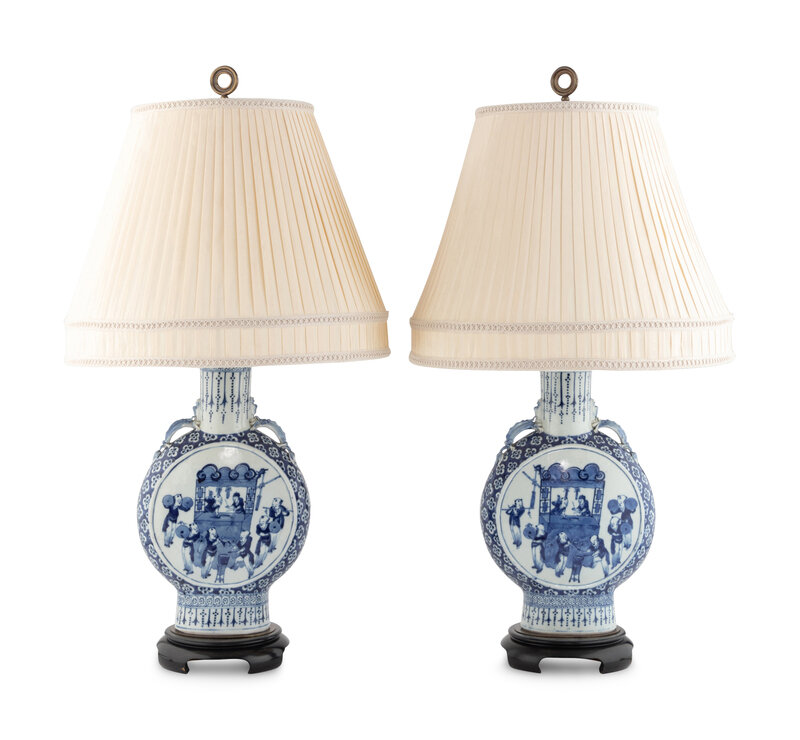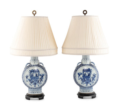 A Pair of Chinese Export Porcelain Moon Flasks Mounted as Lamps