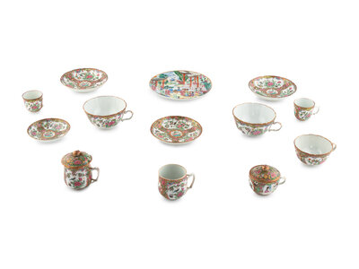 Thirteen Chinese Export Rose Medallion Porcelain Articles