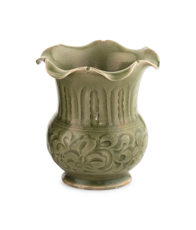 A Chinese Carved Yaozhou Celadon Glazed Porcelain Flori-form Vase