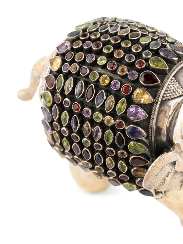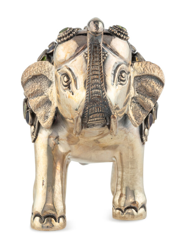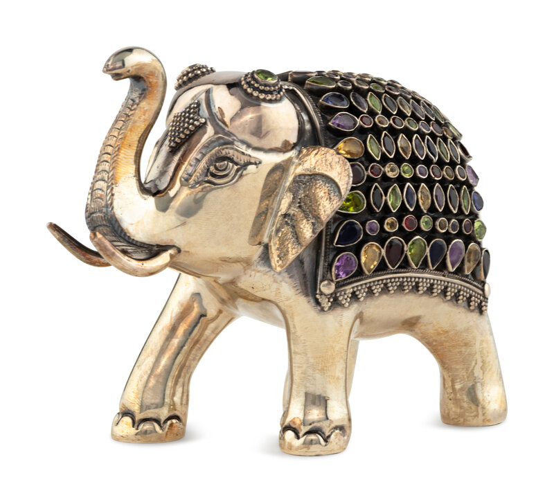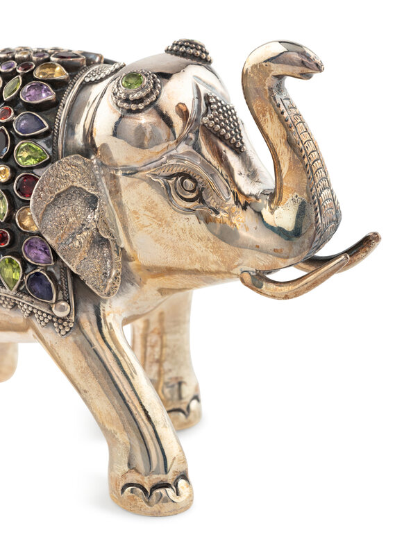 An East Indian Silver Plated and Jeweled Figure of an Elephant