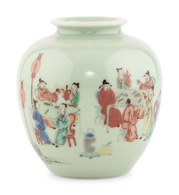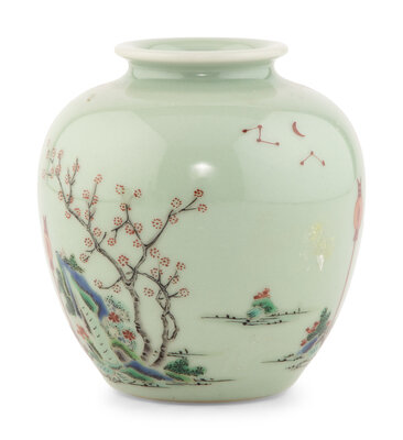 A Chinese Celadon Glazed Famille Rose Porcelain Jar