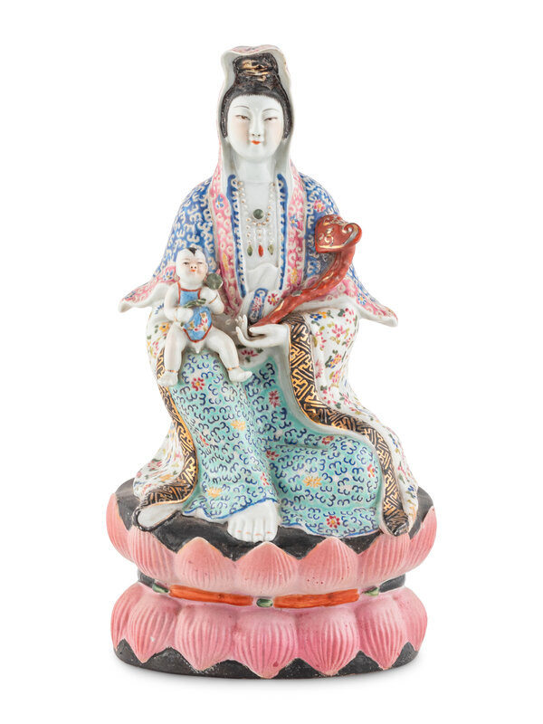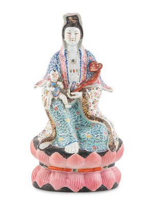 A Chinese Famille Rose Porcelain Figure of Guanyin
