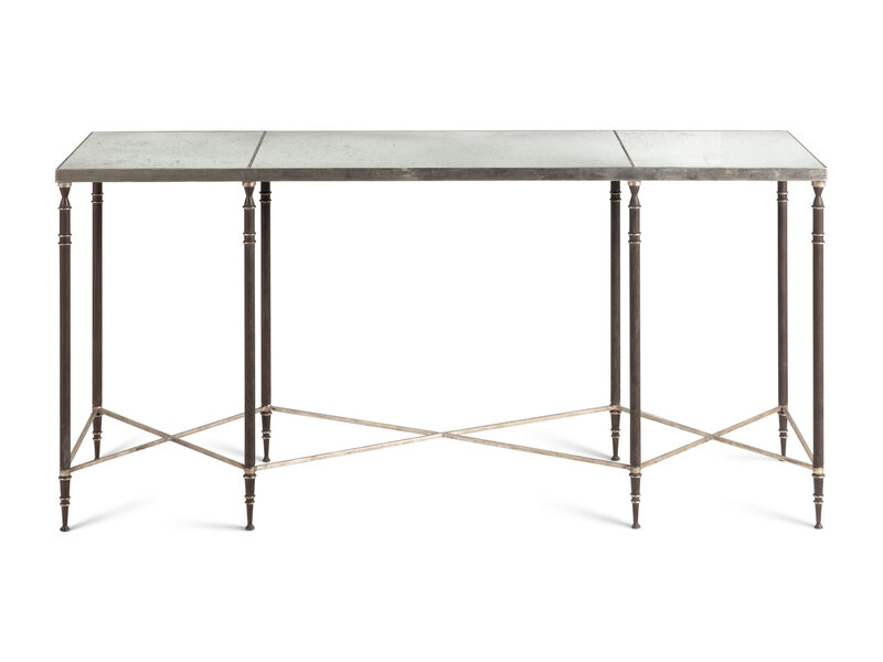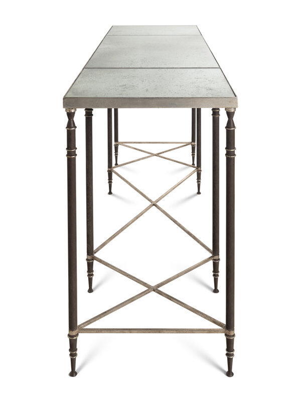 An Ebanista Yves Mirrored Iron Console Table