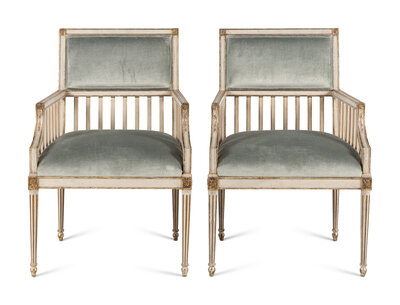 A Pair of Ebanista Florentina Painted and Parcel-Gilt Bergeres