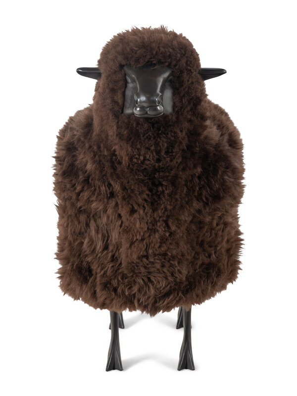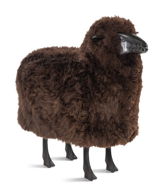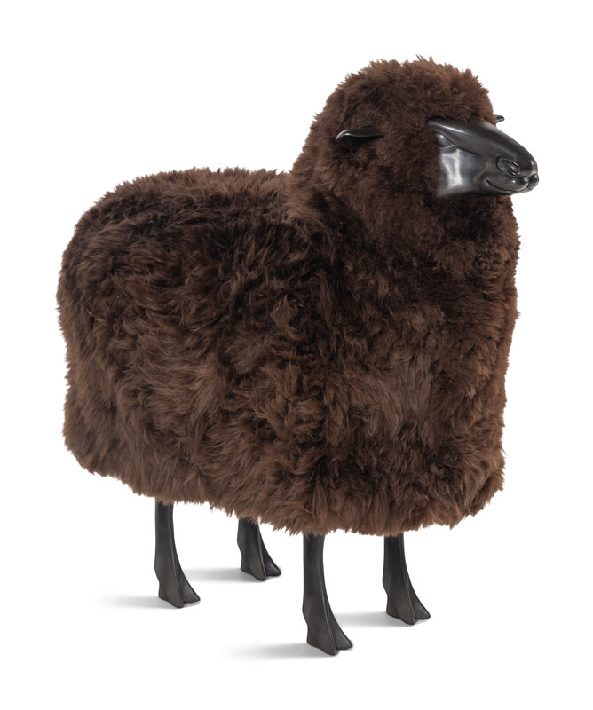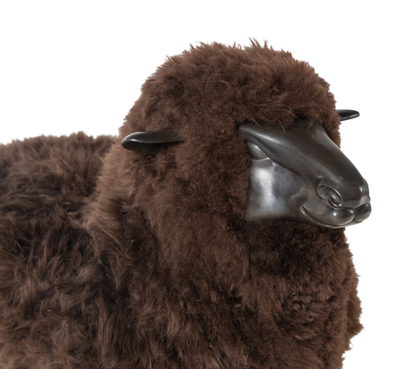 A Polished Cast Metal and Wool Model of a Sheep