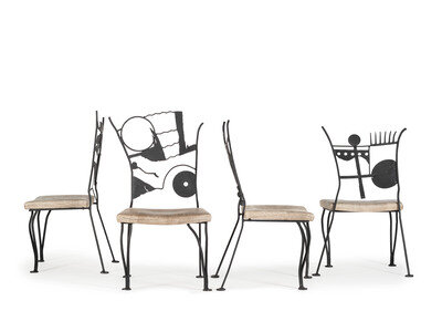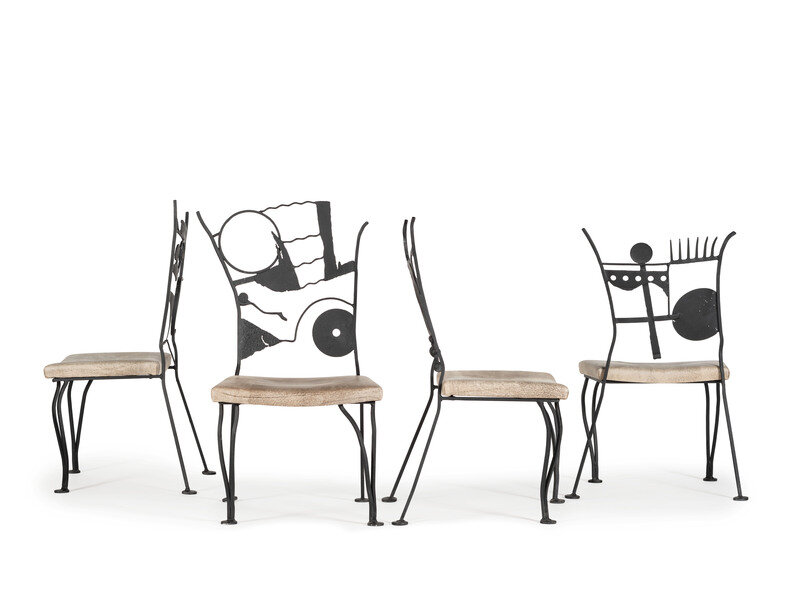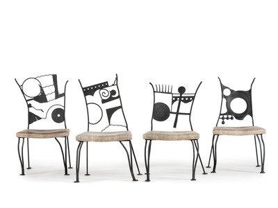 A Set of Four Post-Modern Painted Wrought Iron Chairs
