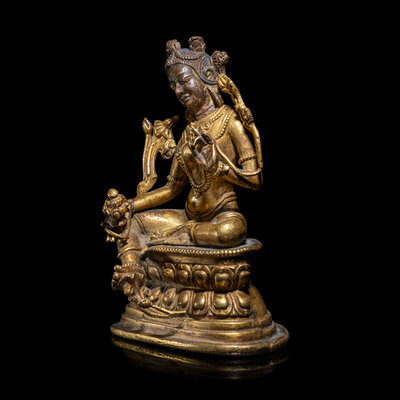 A Gilt Copper Alloy Seated Figure of Tara, in the Style of 11th/12th Century