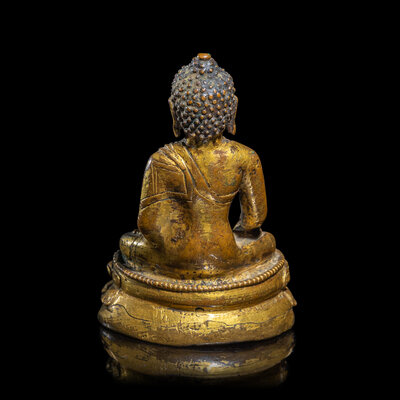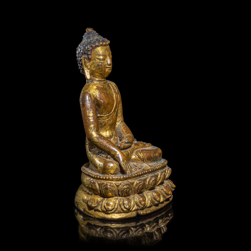 A Tibetan Gilt Copper Alloy Figure of Buddha Shakyamuni, 15th/16th Century