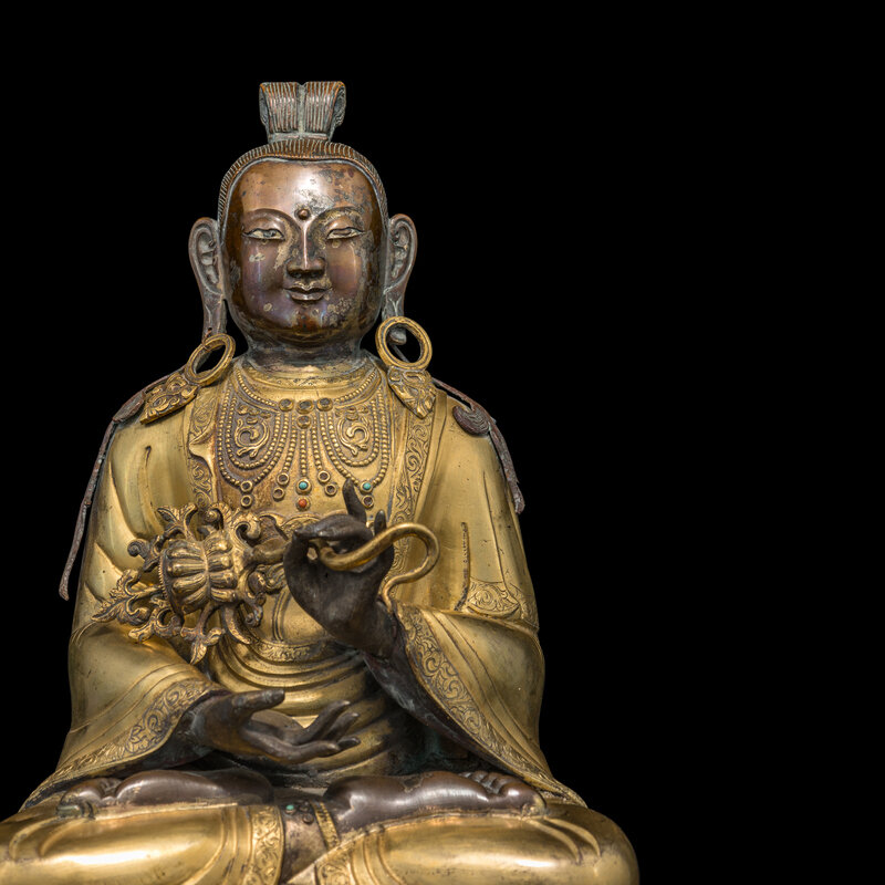 A Large Mongolian Parcel Gilt and Repoussé Figure of a Bodhisattva, Qing Dynasty